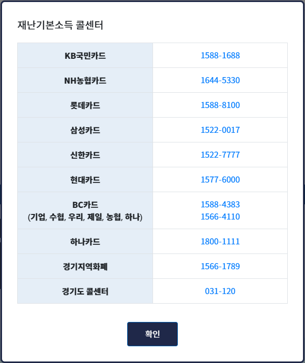 재난기본소득 지급과 관련해서 궁금한 게 있는 경우 경기도 콜센터(031-120)에 문의를 하면 되고 최종 카드 승인과 관련해서는 카드사에서 처리하기 때문에 신청한 카드의 카드사에 문의를 해보면 됩니다.