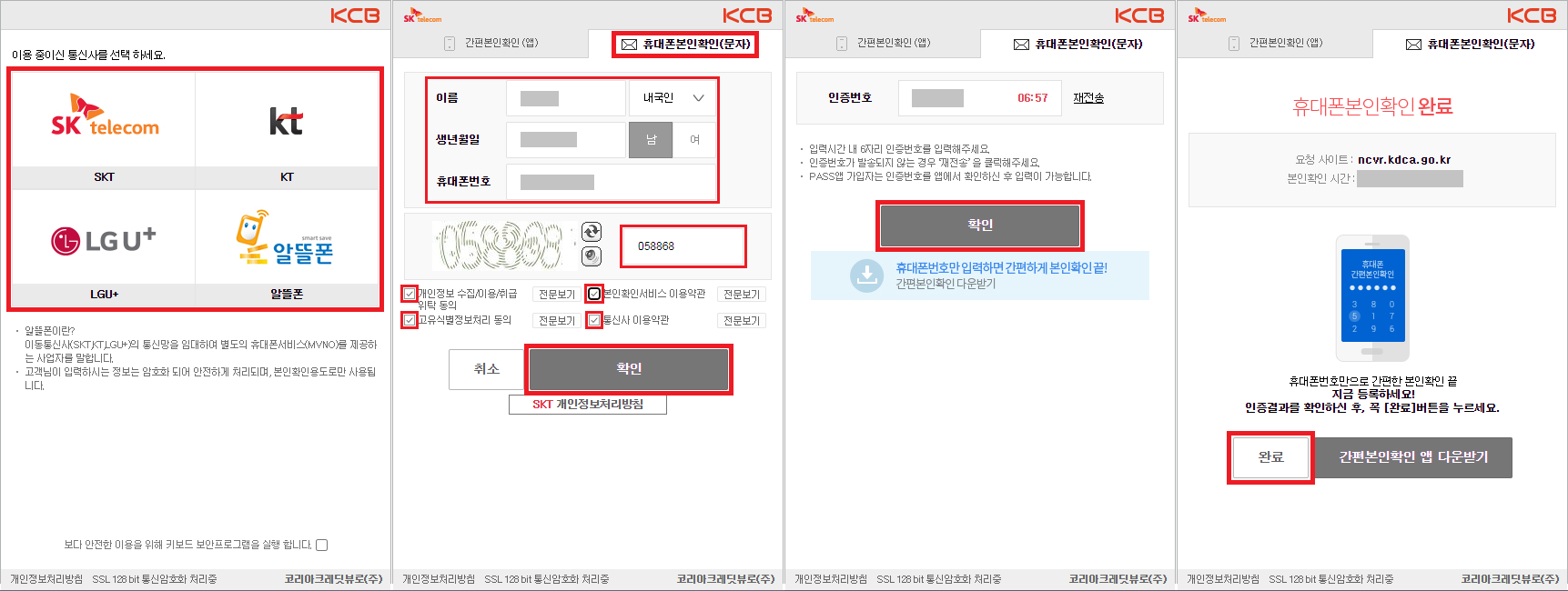 휴대폰 본인 인증 과정입니다.