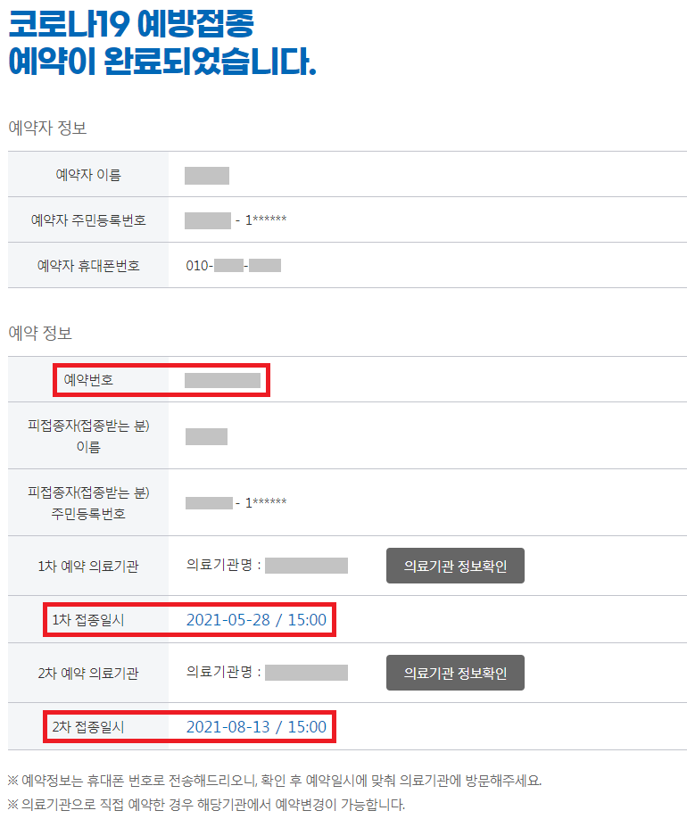 예약 변경은 예약 2일 전까지만 온라인으로 직접 하고 예약 전일이나 당일에 건강 상태가 안 좋아서 예약을 변경해야 하는 경우 예약된 의료기관에 집적 연락해서 일정을 변경해야 한다고 하니 참고 바랍니다.