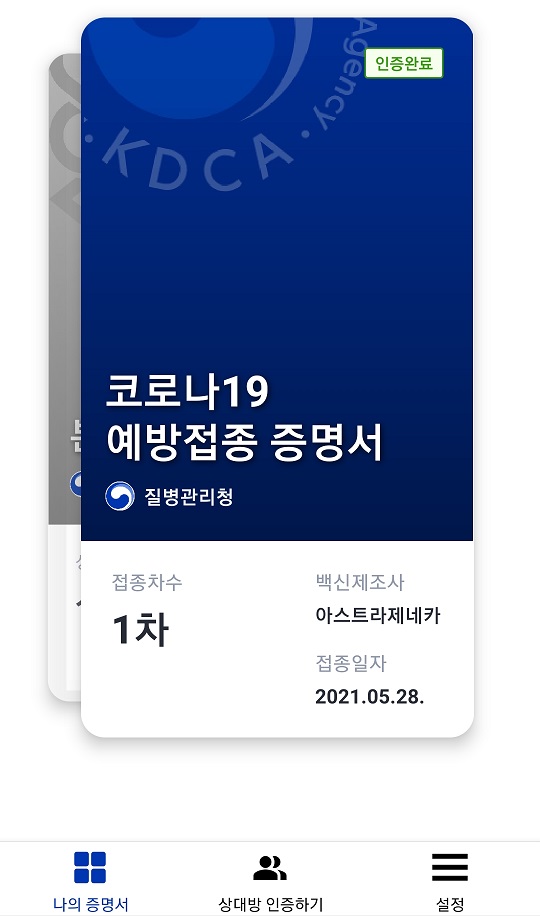 소위 말하는 백신 여권과는 조금 다른 국내에서 예방접종 사실을 증명하기 위해서 발급하는 전자 문서입니다.