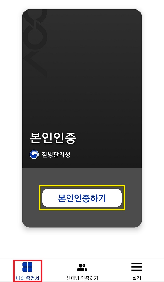 전자 예방접종 증명서는 앱을 사용한 방식이고 본인 인증 과정이 있기 때문에 본인 명의의 스마트폰이 있어야 사용할 수 있습니다.