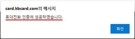 휴대폰 문자로 온 인증번호를 5분 이내에 입력하고 확인을 클릭합니다.