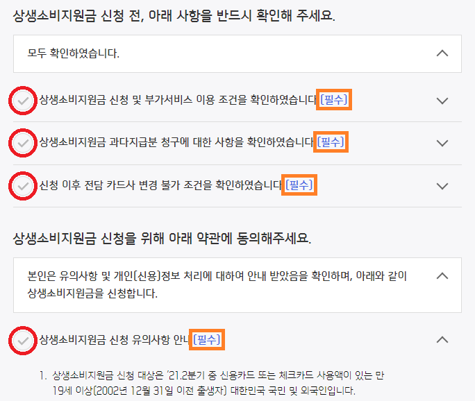 상생 소비지원금 지급 및 다른 카드사에 카드 사용 정보를 조회하기 위해 동의 항목이 아주 많이 있습니다.