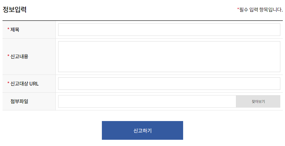 위 페이지에 접속하면 간단한 신고 관련 안내사항이 명시되어 있으니 확인 바랍니다.