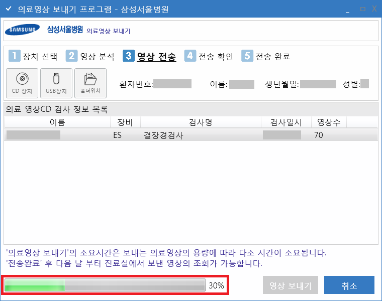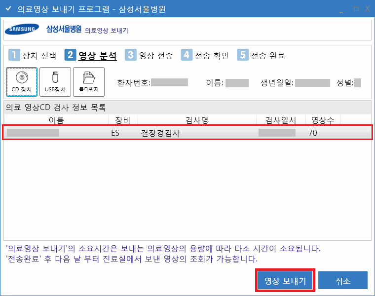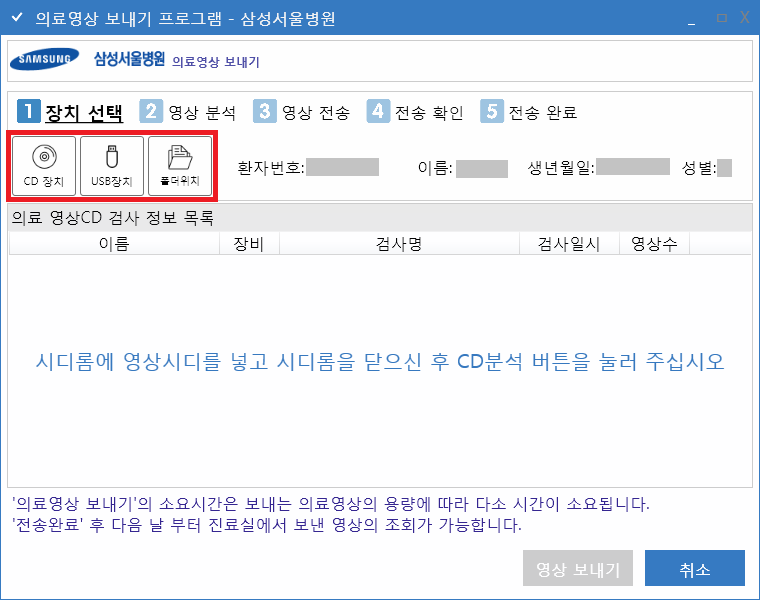 삼성서울병원의 의료 영상 CD 보내기 서비스는 전용 프로그램을 사용해서 진행됩니다.