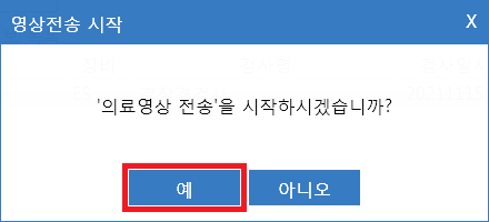 의료 영상이 정상적으로 전송 완료되었다는 메시지가 나옵니다.