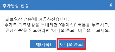 더 이상 업로드할 의료 영상이 없다면 '아니오(종료)'를 클릭해서 종료합니다.