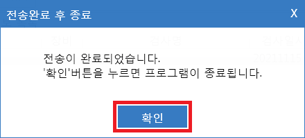 확인을 클릭해서 전송 프로그램을 종료합니다.