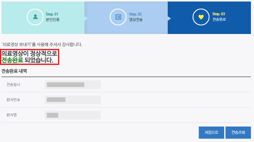 저의 경우 병원에 외래 방문 시 접수처에서 영상이 올라가 있는지 한 번 더 확인을 해줬습니다.